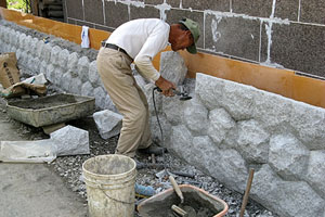 現在では数少ない「ノミ」を使える職人が、ひとつひとつ積み上げていきます。